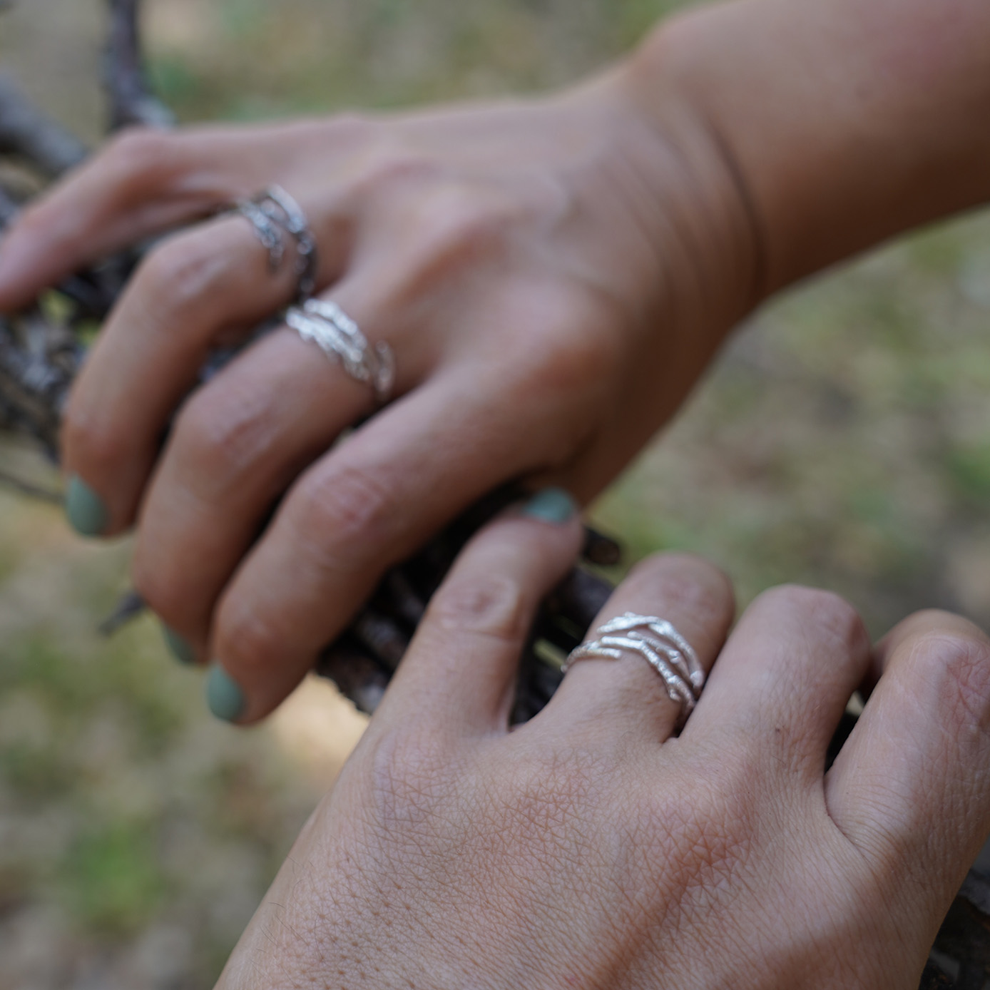 Hecho a mano con dedicación y cuidado, este anillo ajustable captura la esencia de la naturaleza en su diseño inspirado en una delicada rama. Elaborado en plata de ley de origen sostenible, está disponible en tres acabados: plateado, negro o con un baño de oro amarillo de 24k. Cada pieza es única, pensada para resaltar tu estilo personal con un toque artesanal y exclusivo. Un accesorio que refleja el amor por el detalle y la belleza de lo hecho a mano.