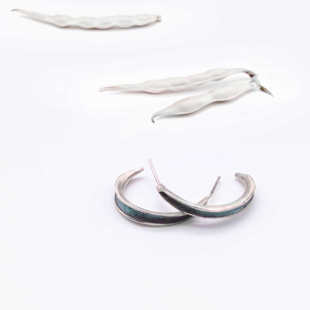 Estas argollas de plata de ley, hechas a mano en mi pequeño taller, destacan por su diseño irregular que aporta un toque único y contemporáneo. Cada par es elaborado con plata de ley sostenible, lo que refleja mi compromiso con la sostenibilidad y el respeto por el medio ambiente. El diseño asimétrico y orgánico de estas argollas las convierte en una pieza moderna y elegante, perfecta para quienes buscan algo diferente.