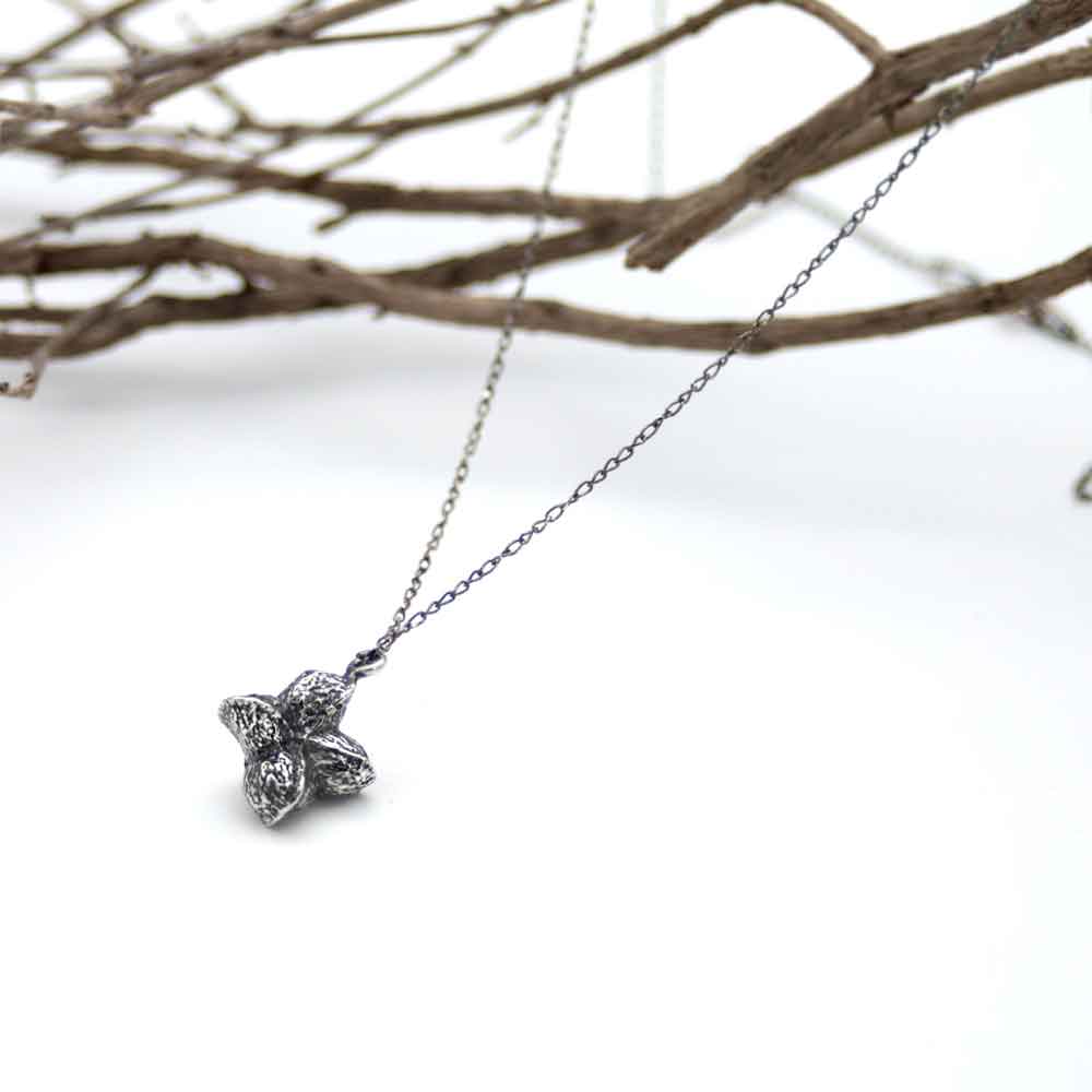 Collar de plata de ley. Reproducción de una flor de bonetero o boj de rio.