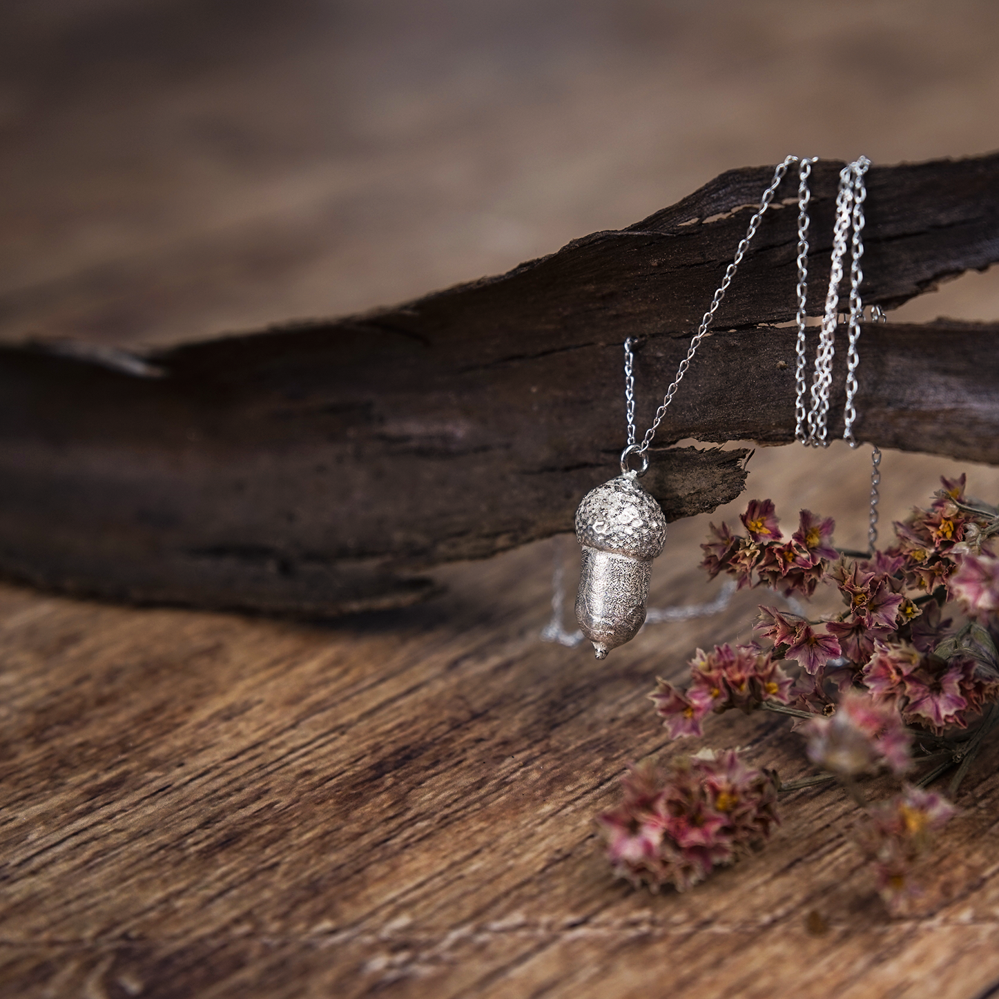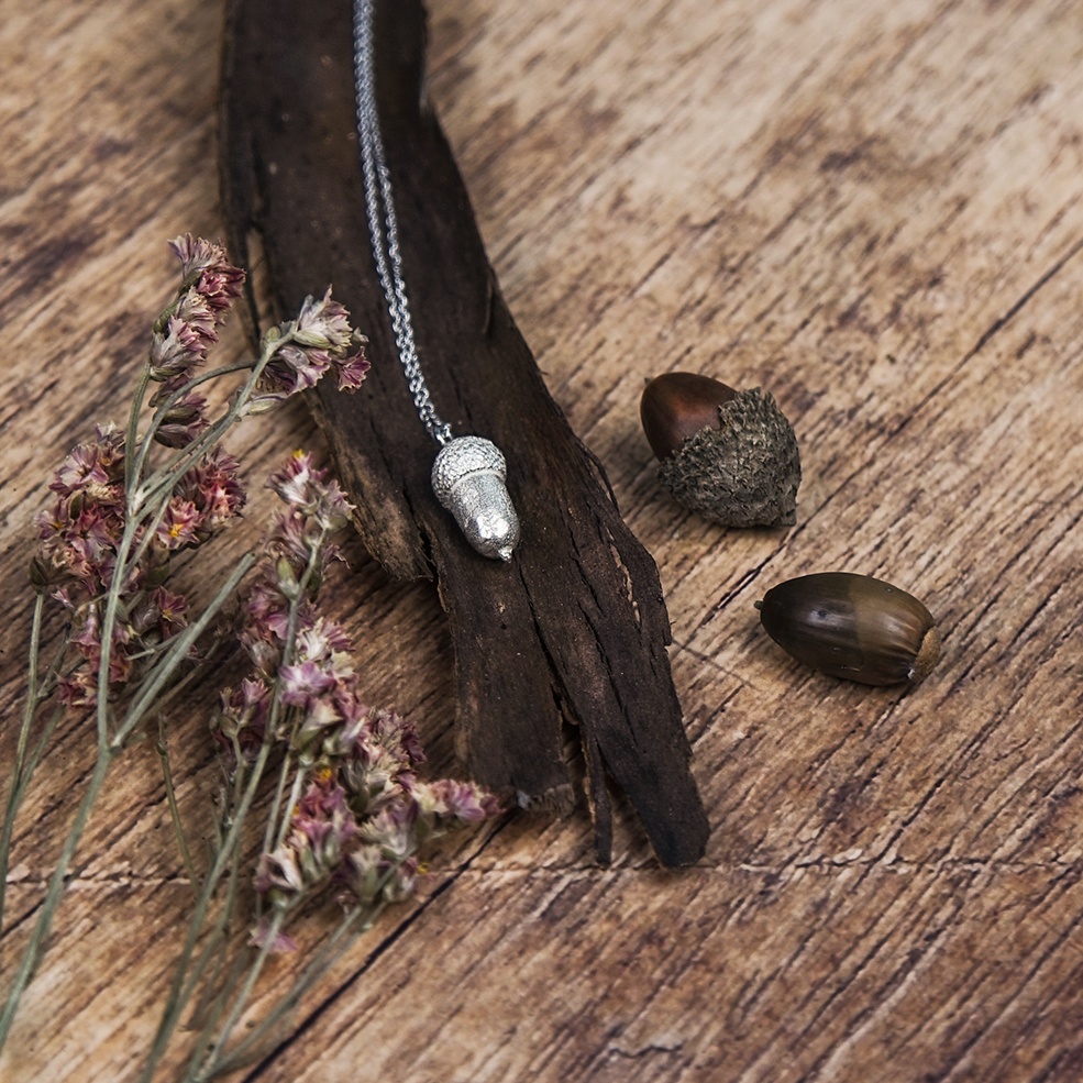 Este collar con colgante en forma de bellota es una pieza singular, elaborada a mano en mi pequeño taller. Cada detalle ha sido cuidadosamente trabajado para reflejar la belleza natural de la bellota, símbolo de crecimiento y fuerza. Hecho con plata de ley reciclada o de origen sostenible, este collar está disponible en tres acabados: plateado, negro o con baño de oro amarillo de 24k. Ideal para quienes buscan una joya que combine elegancia y significado, mientras respetan el medio ambiente con un diseño ético y artesanal.