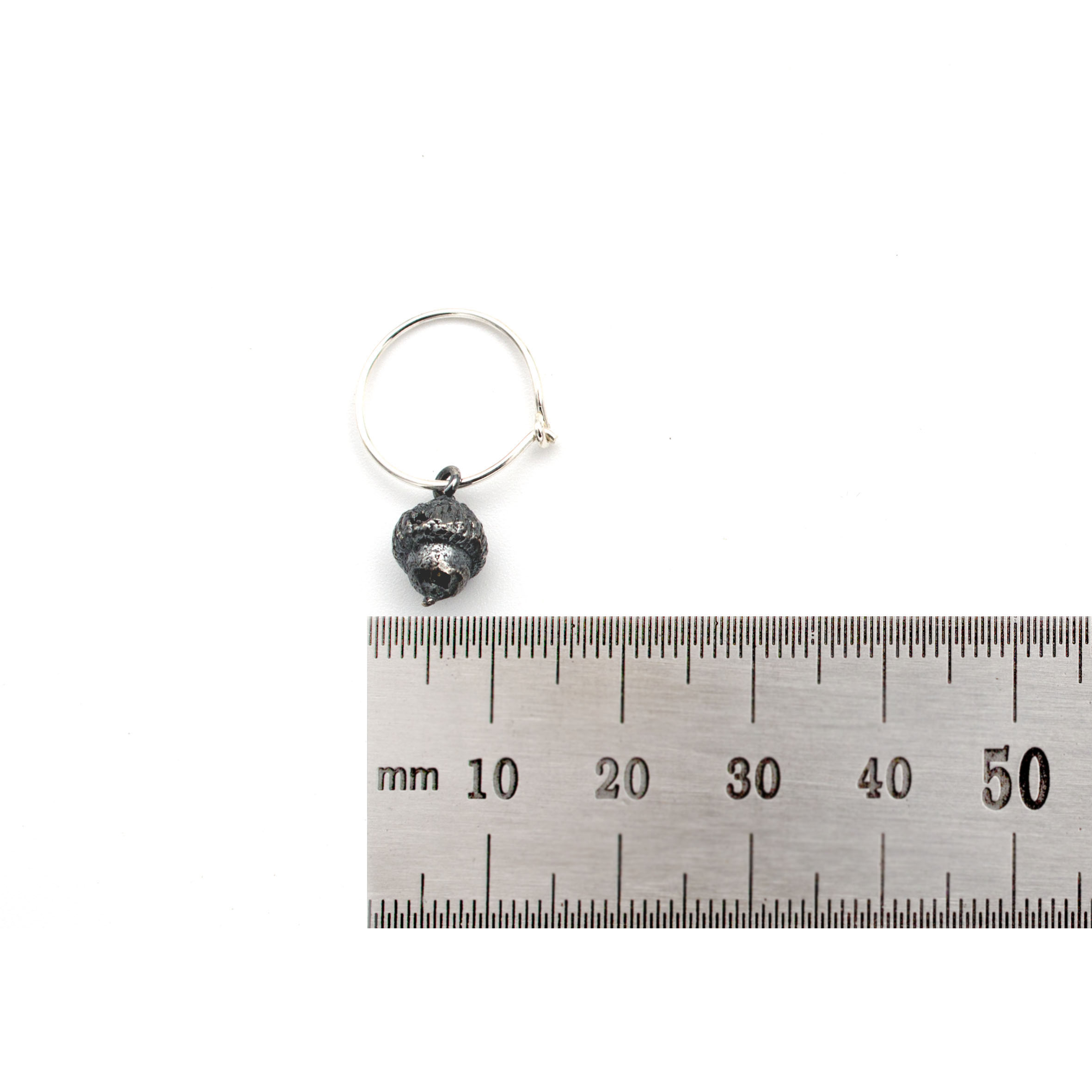 Pendientes de aro con colgante de bellota. Aretes Hechas A Mano en Plata de Ley. Disponibles en Plateado, Negro o con Baño de Oro amarillo de 24k .